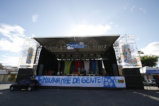 Talvez se tivéssemos investido mais que o dobro do gasto, colocando os adereços em frente e verso nos braços de luz dos postes, o efeito fosse outro. A combinação entre o Desenho de Mãe Melânia (João Martins) e as Flores, Estandartes e Marca da Festa (Marcílio) ficou de uma beleza impar.
