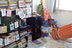 Barreto faz pose em meio à sua “bagunça criativa”Um modesto quarto e sala em prédio antigo do centro de Salvador serve de morada ao cordelista Antônio Barreto. Por todo lado estão livros e, claro, cordéis escritos por ele. Seja na mesa do computador na sala, nas paredes ou dependurados na estante. Até mesmo á frente do aparelho de TV, ao que parece pouco usado, tem livreto de cordel.
