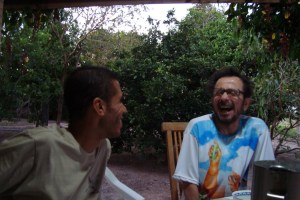 “Estou no Edén”, fala Tom. “Para quem cuida de um pequeno jardim em São Paulo, isso aqui é o paraíso mesmo”, comento com ele. Árvores, galinhas, grama… sem falar da deslumbrante paisagem. Como o bate papo é bom, o tempo passa depressa.