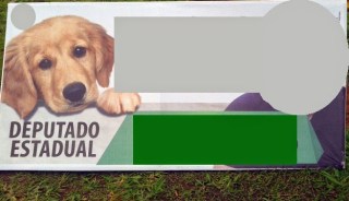 A cidade está infestada de placas com fotos de políticos. Outro dia vi uma com um candidato a deputado, um candidato a senador, um candidato a governador e um cachorro.